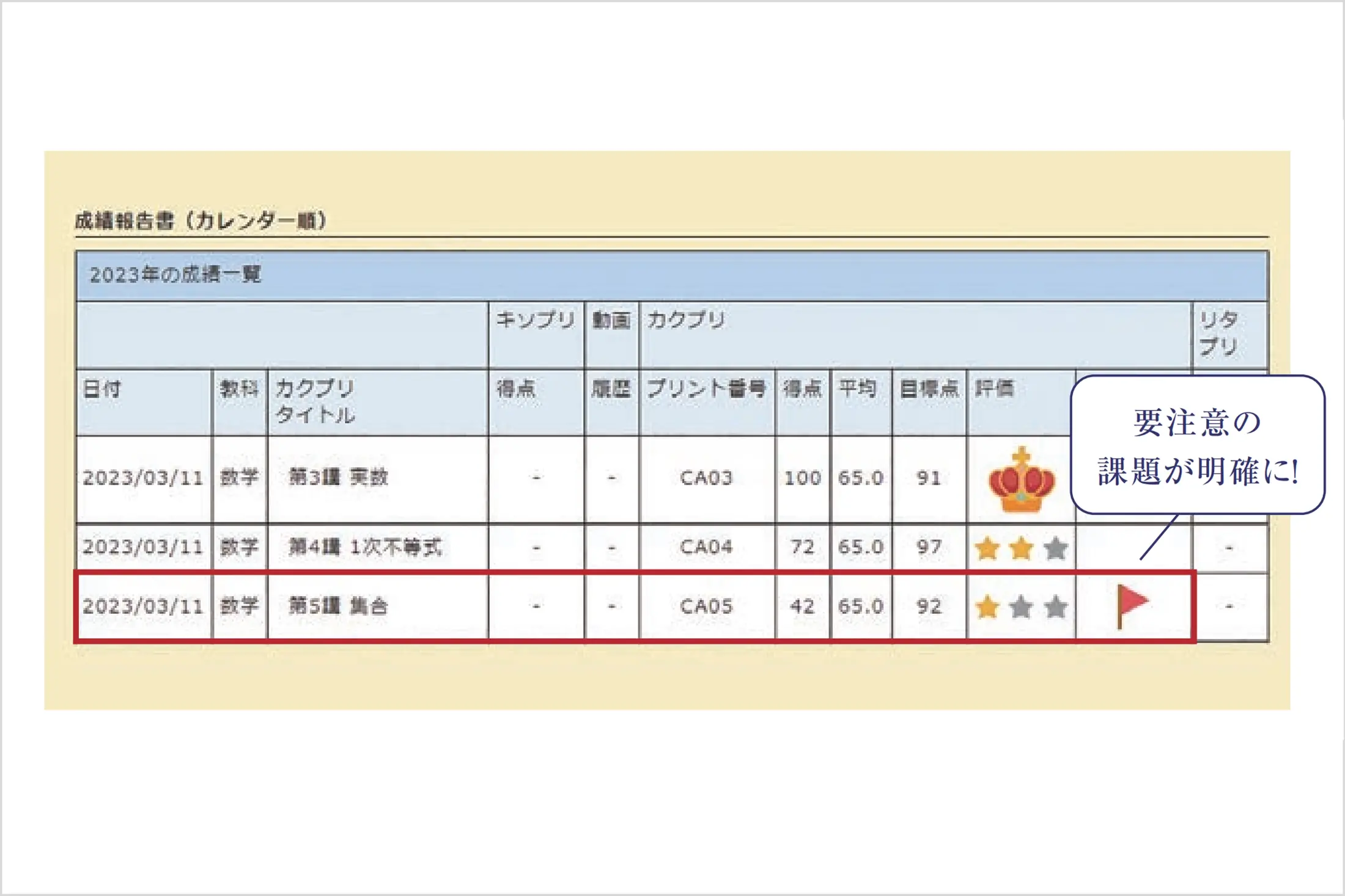 ※得意な英語は上のクラス、苦手な数学は下のクラス、というように教科別にぴったりのクラスで勉強できます